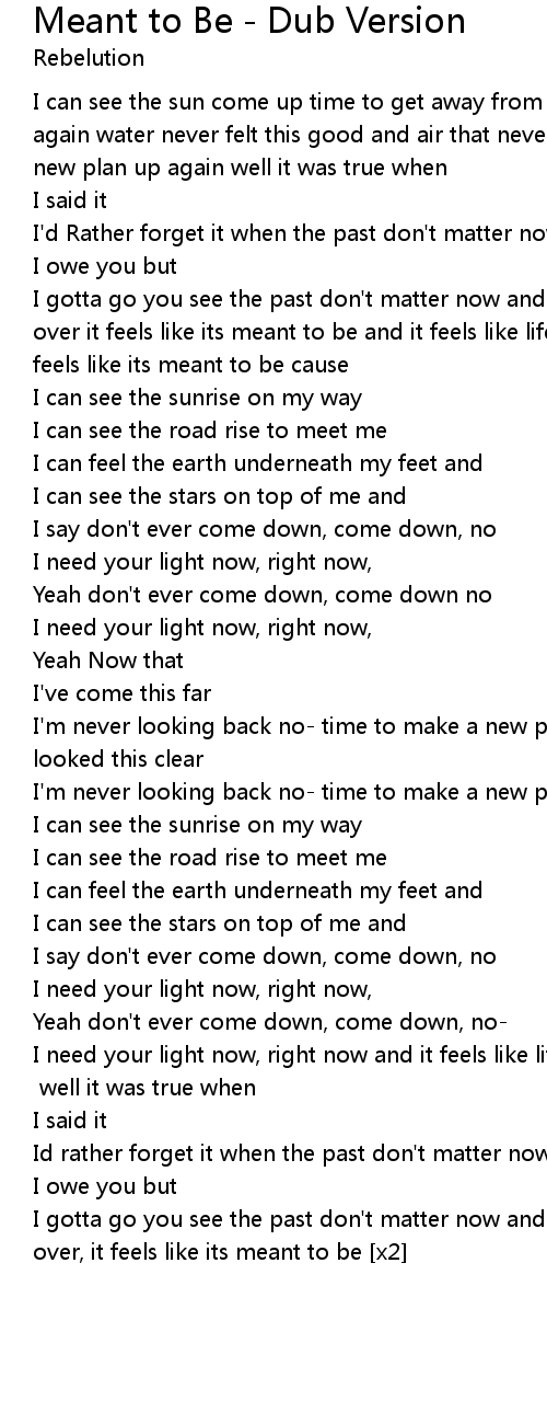 I gotta go you see the past don't matter now and it feels like life is taking over, it feels like its meant to be [x2] |