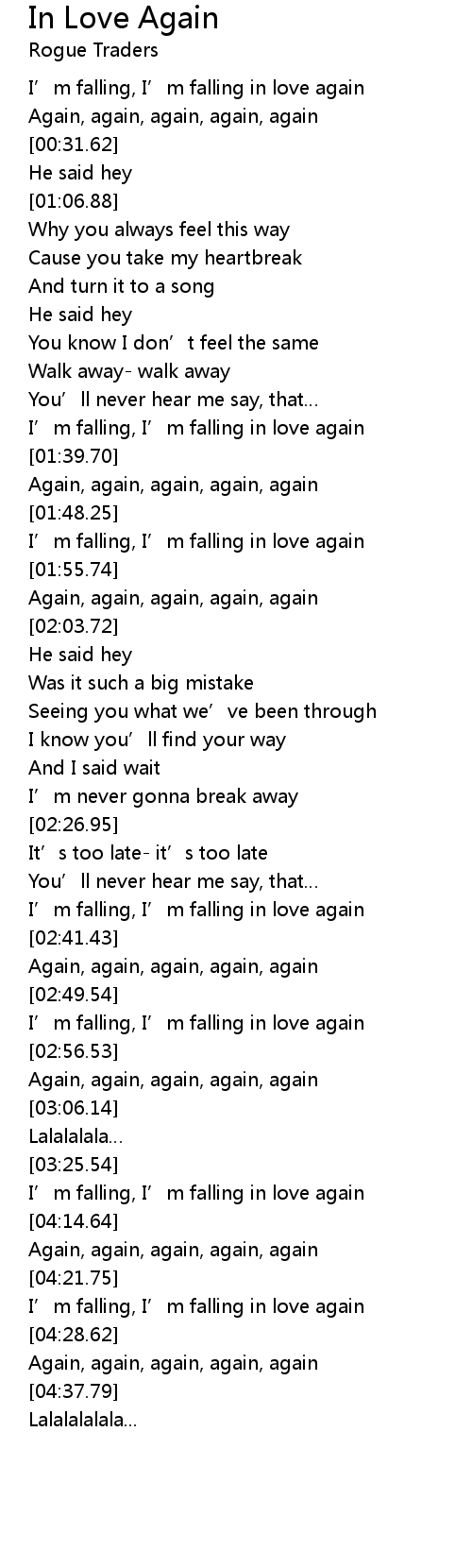 | [00:16.40] | I' m falling, I' m falling in love again |