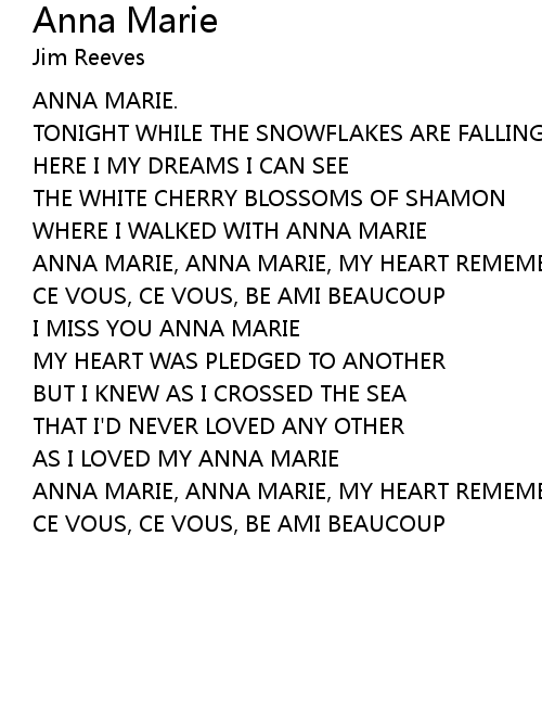 | ANNA MARIE, ANNA MARIE, MY HEART REMEMBERS AND SIGHS | |