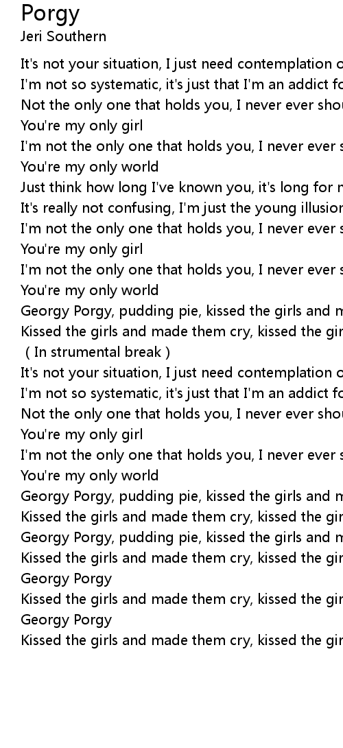 | Georgy Porgy, pudding pie, kissed the girls and made them cry | |