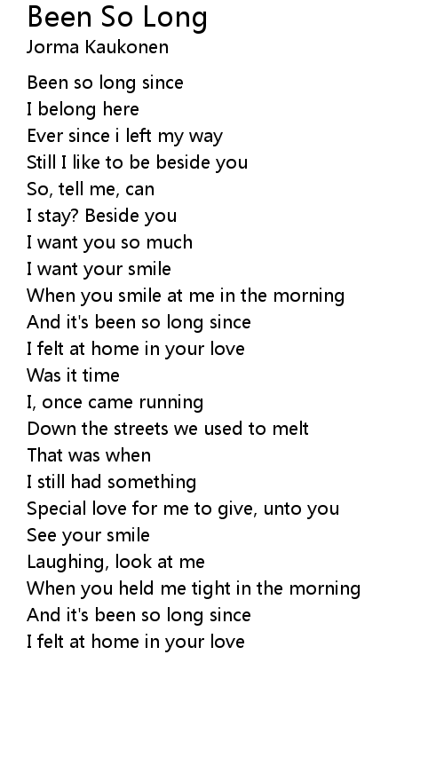 Been so long since |