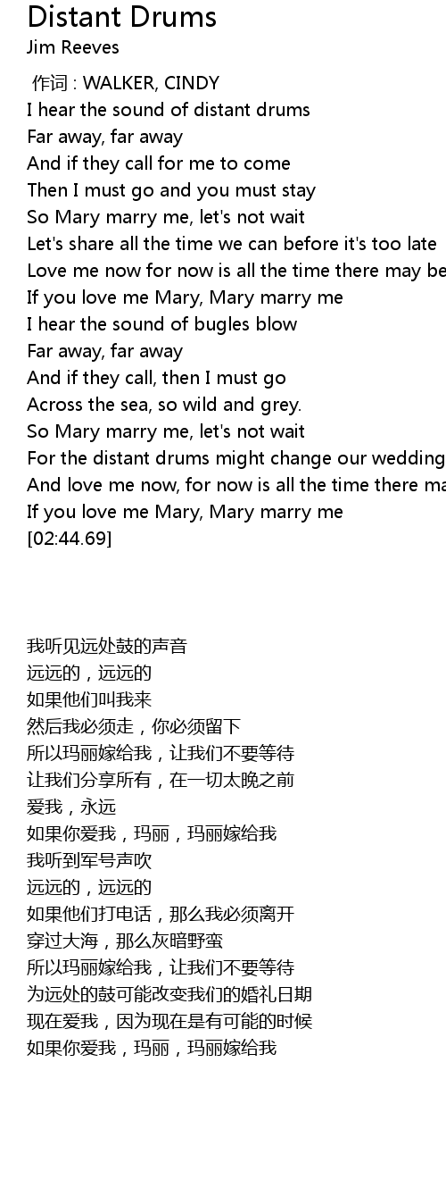 | [00:42.62] | 所以玛丽嫁给我,让我们不要等待 |