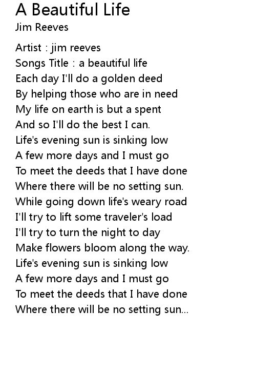 | [00:01.40] | Songs Title:a beautiful life |