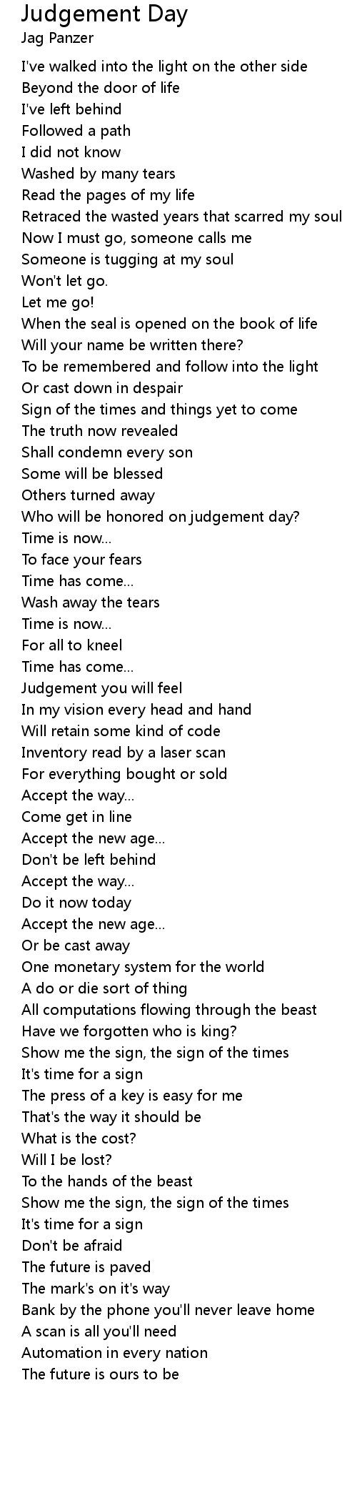 Judgement Day 歌词