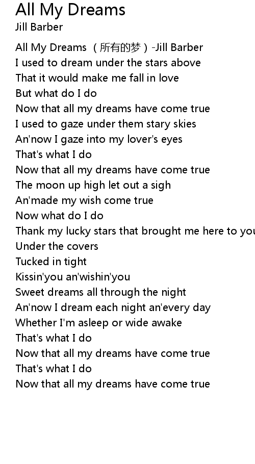 | [00:00.00] | All My Dreams suǒ yǒu de mèng Jill Barber |