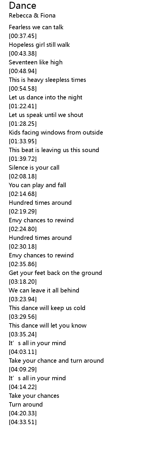 | [01:19.97] | Let us dance into the night |