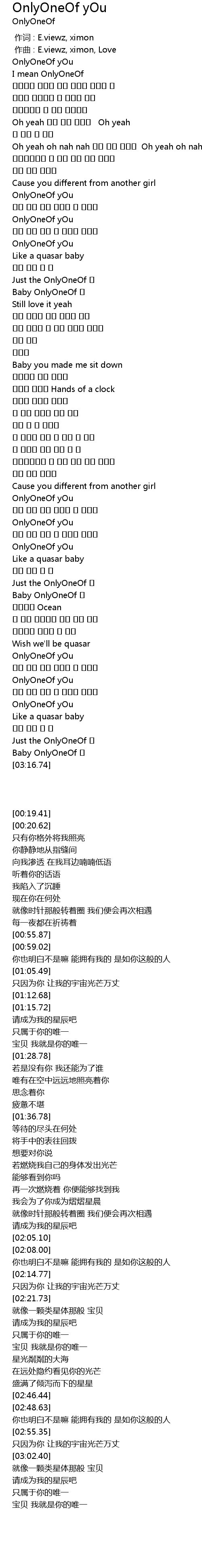 | [00:19.41] | OnlyOneOf yOu |