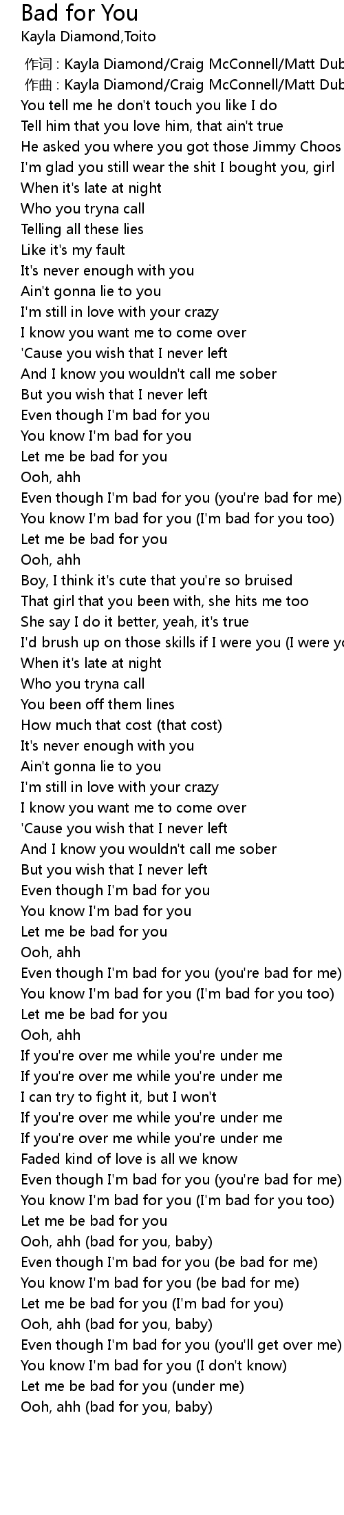 | [02:46.833] | You know I' m bad for you be bad for me |