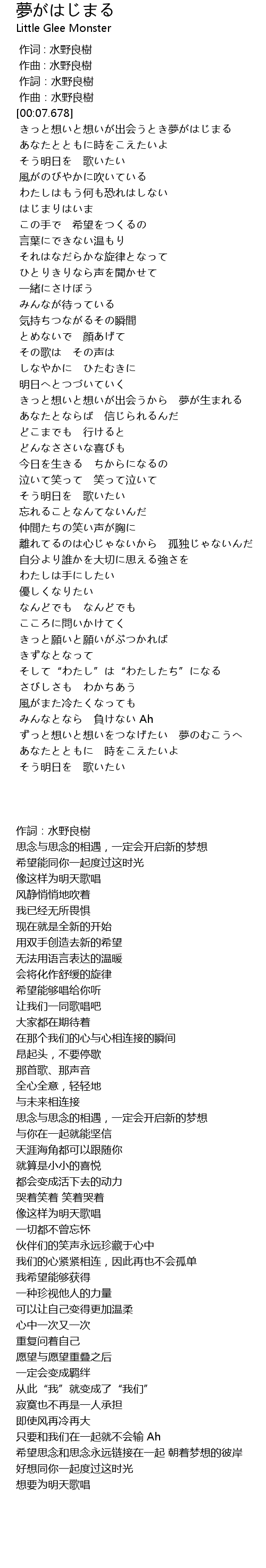 | [01:53.698] | 思念与思念的相遇,一定会开启新的梦想 |