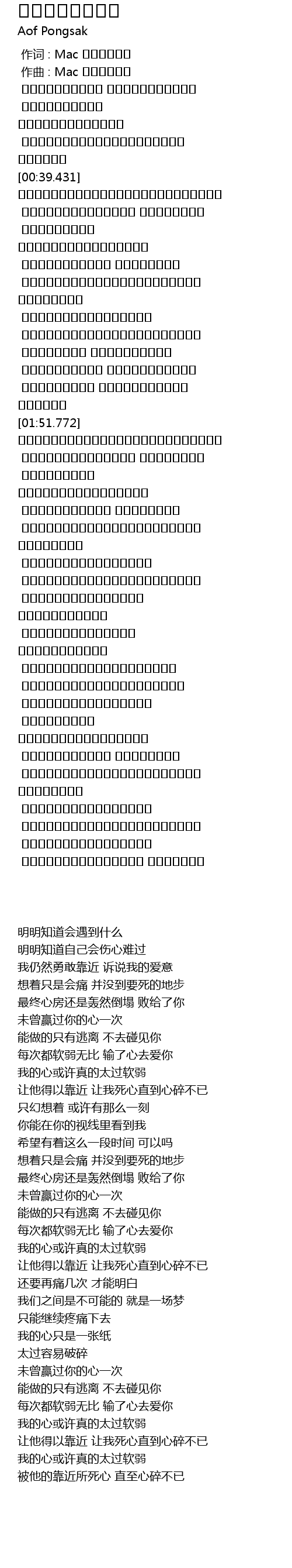 | [00:39.431] | ที่คิดว่าแค่เจ็บไม่ถึงตาย |