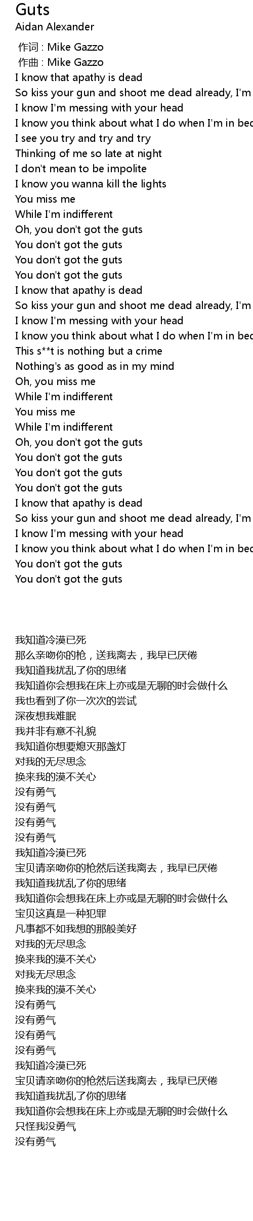 | 歌曲 | Guts |