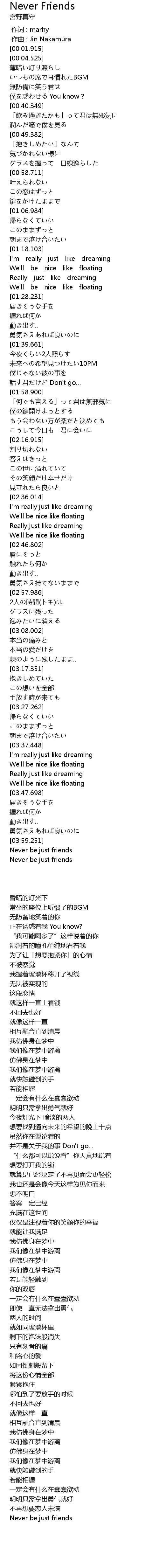 | [04:03.478] | Never be just friends |