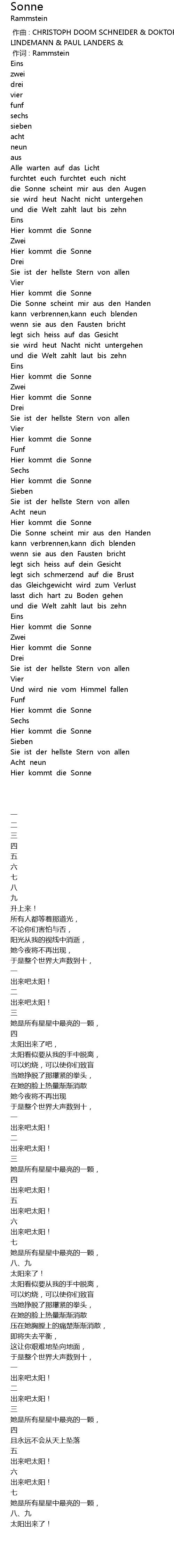 | [00:00.00] | 作曲 : CHRISTOPH DOOM SCHNEIDER & DOKTOR CHRISTIAN LORENZ & TILL LINDEMANN & PAUL LANDERS & |