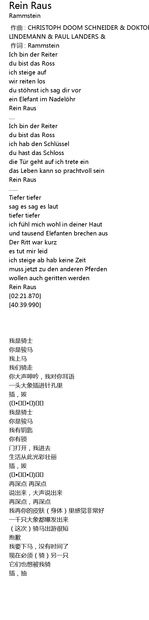 | [00:01.00] | 作词 : Rammstein |