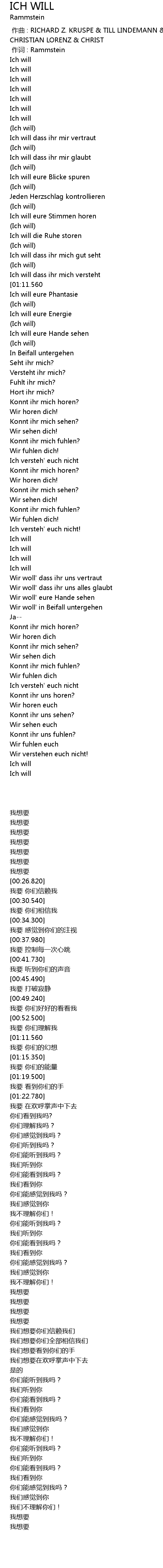 | [00:56.170][01:11.560] | Ich will |