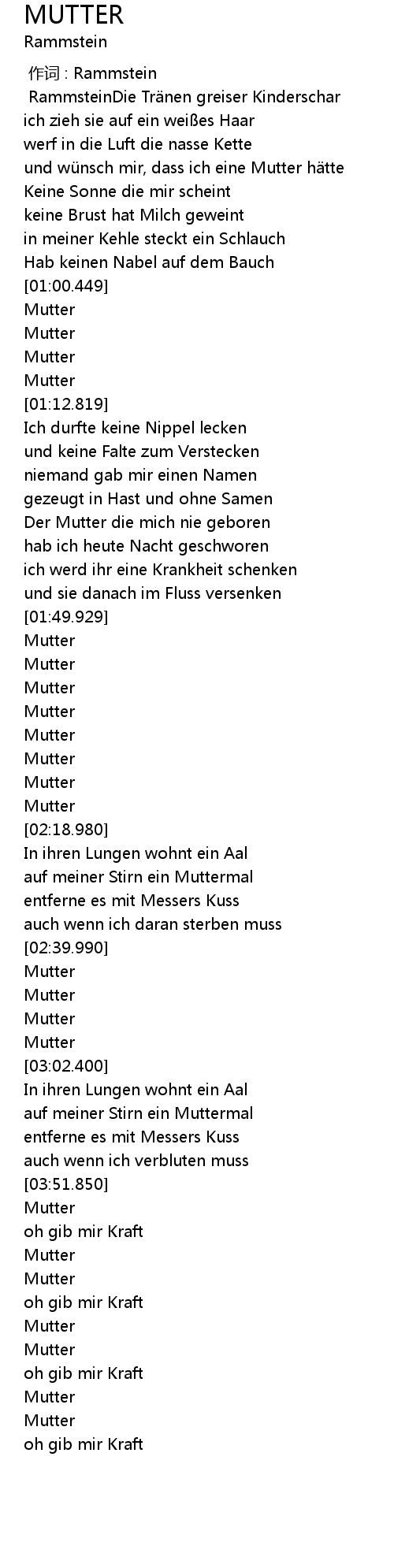 | [00:39.999] | und wü nsch mir, dass ich eine Mutter h tte |