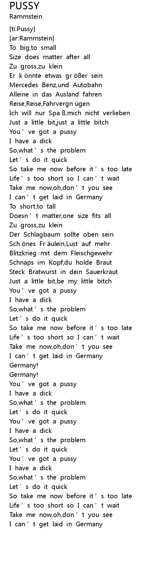 | [02:03.98] | Steck Bratwurst in dein Sauerkraut |
