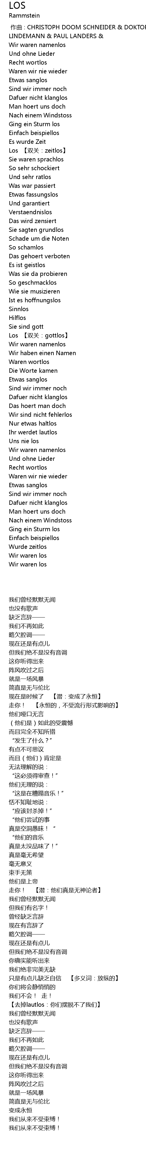 | [00:00.00] | 作曲 : CHRISTOPH DOOM SCHNEIDER & DOKTOR CHRISTIAN LORENZ & TILL LINDEMANN & PAUL LANDERS & |
