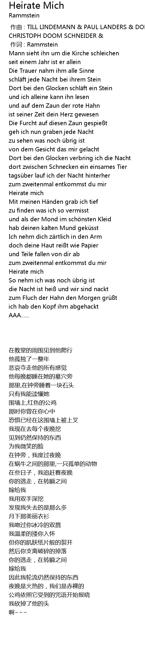 | [00:01.00] | 作词 : Rammstein |