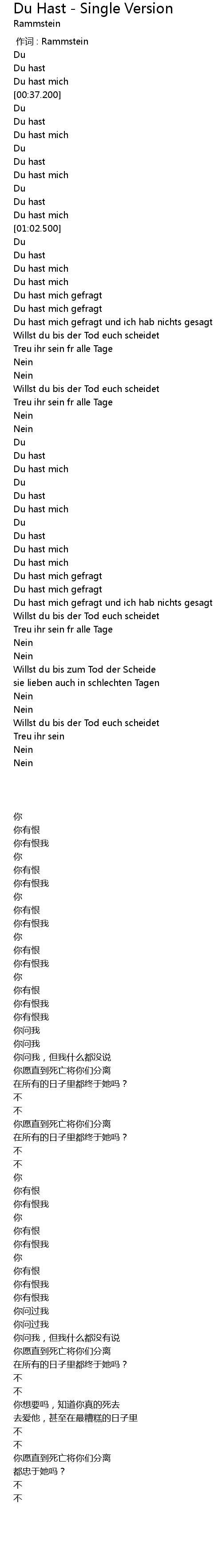 | [01:32.500] | Willst du bis der Tod euch scheidet |