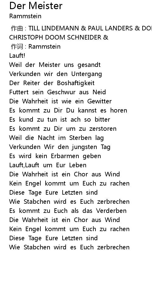 | [00:01.00] | 作词 : Rammstein |