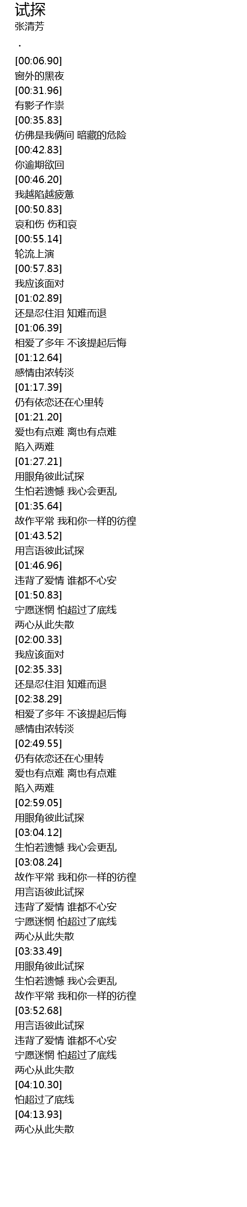 | [04:00.30] | 宁愿迷惘 怕超过了底线 |