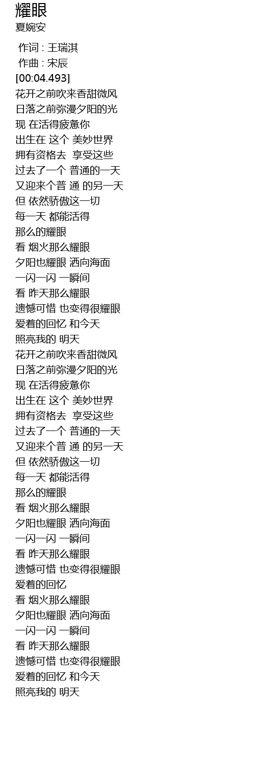 | [02:59.493] | kàn zuó tiān nà me yào yǎn |