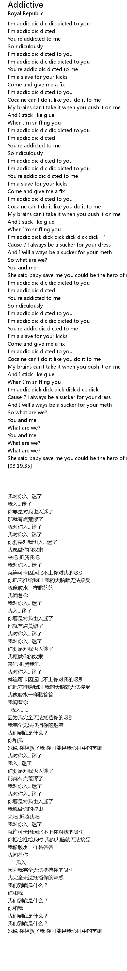| [00:56.44] | I' m addic dic dic dic dicted to you |