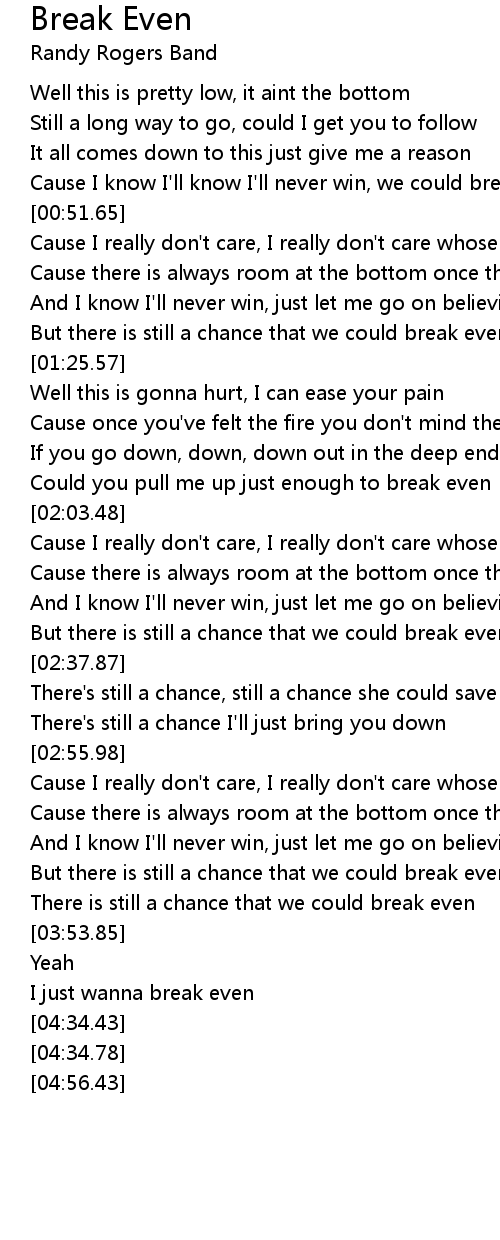 I just wanna break even |