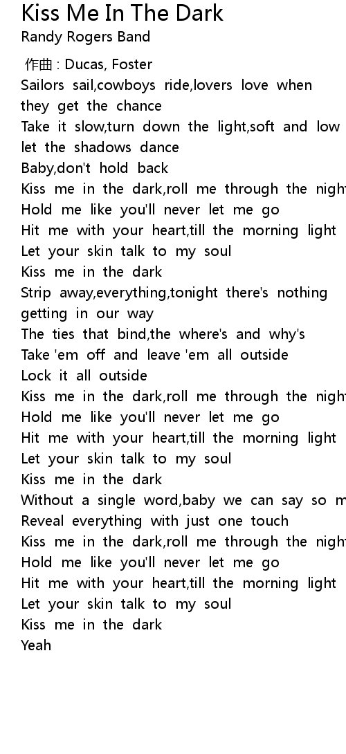 | [00:42.60] | Kiss me in the dark,roll me through the night |