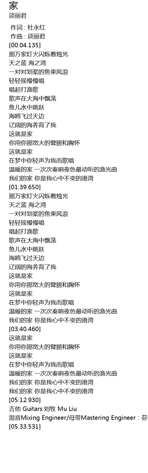 | [04:52.795] | 我们的家 你是我心中不变的港湾 |