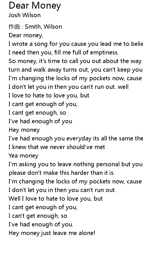 | Dear money, | |