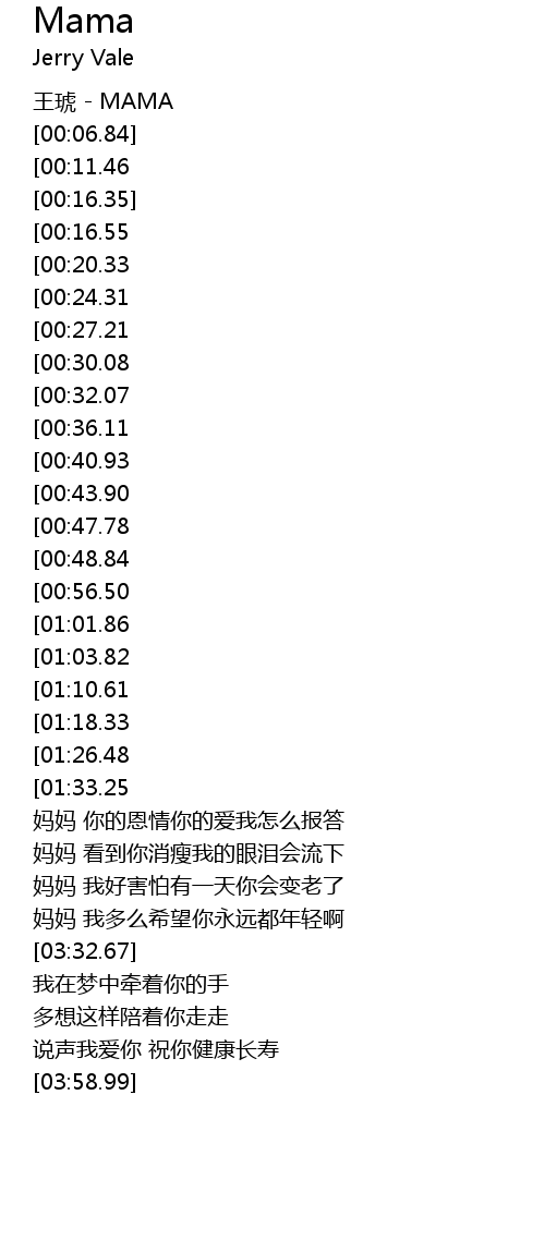 | [03:02.97] | 妈妈 你的恩情你的爱我怎么报答 |