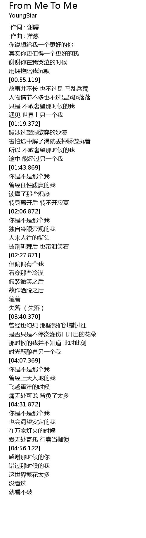 | [01:37.623] | tú zhōng néng jīng guò lìng yí gè wǒ |