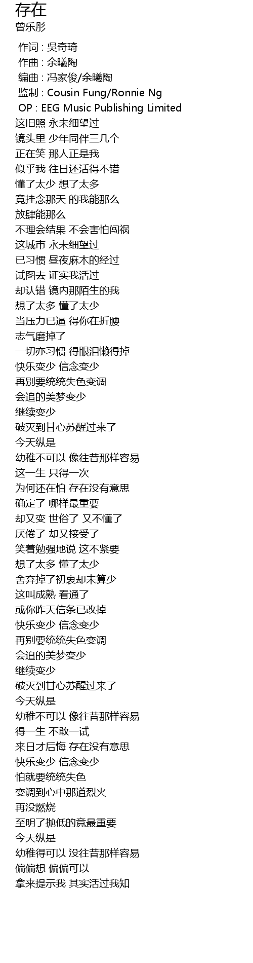 | [00:03.000] | 监制 : Cousin Fung/Ronnie Ng |