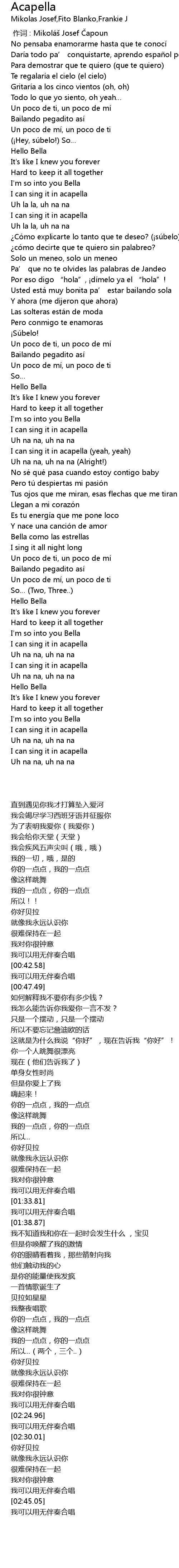 | [00:45.14] | I can sing it in acapella |
