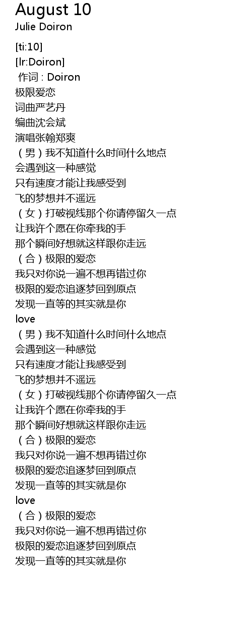 | 歌曲 | August 10 |