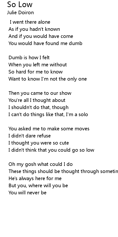 I didn't think that you could go so low |