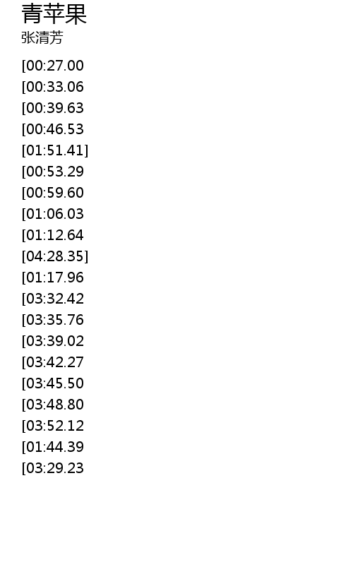| [02:24.84][00:39.63] | 象是一只尚未成熟的青苹果 |