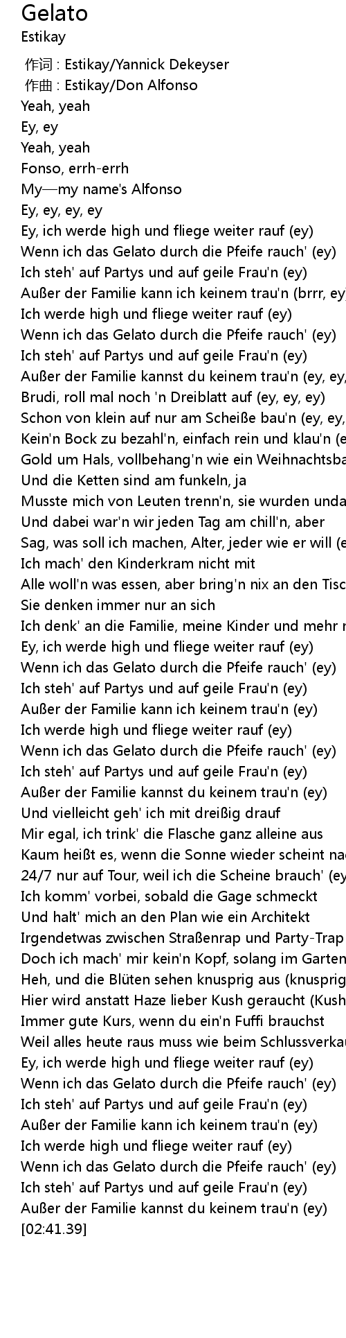 | [02:31.83] | Wenn ich das Gelato durch die Pfeife rauch' ey |
