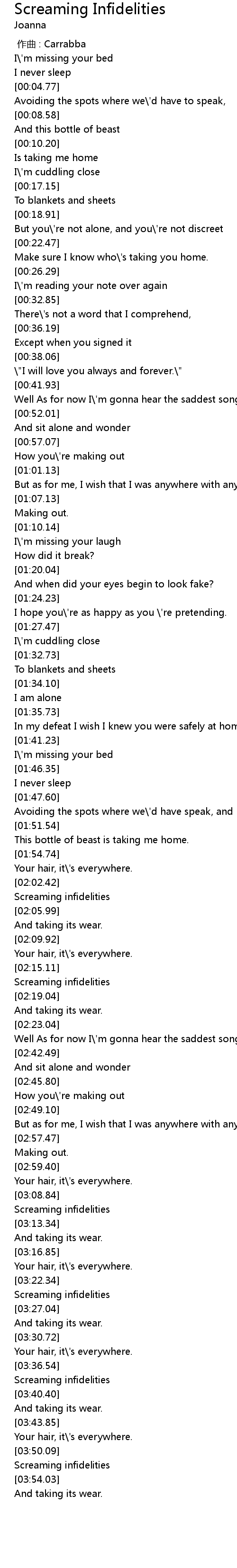 | [03:39.54] | Screaming infidelities |