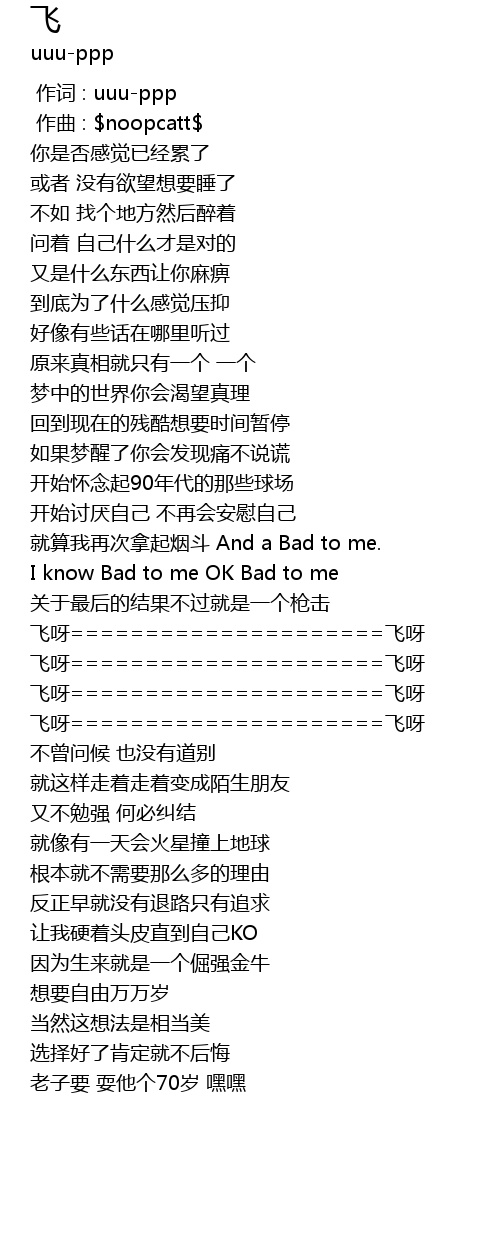 | [01:28.209] | 飞呀=====================飞呀 |