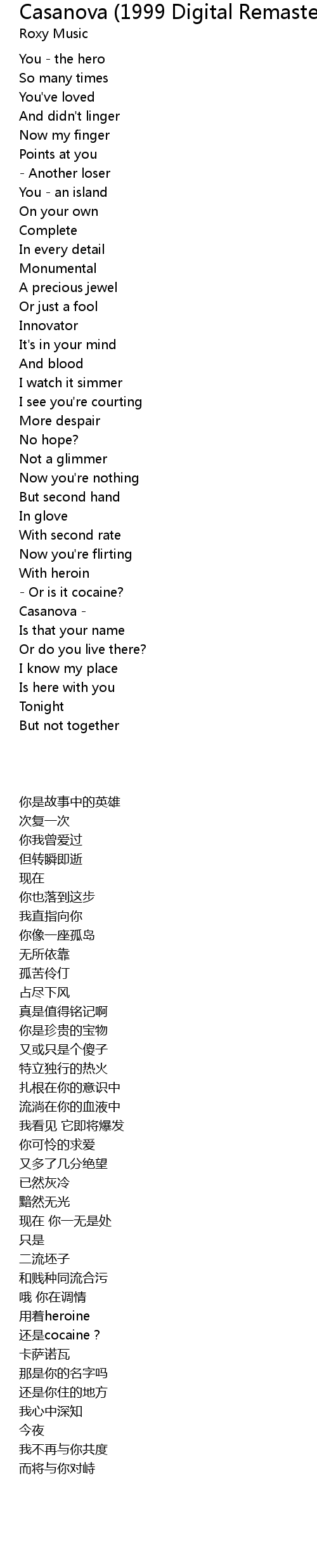 | 歌曲 | Casanova (1999 Digital Remaster) |