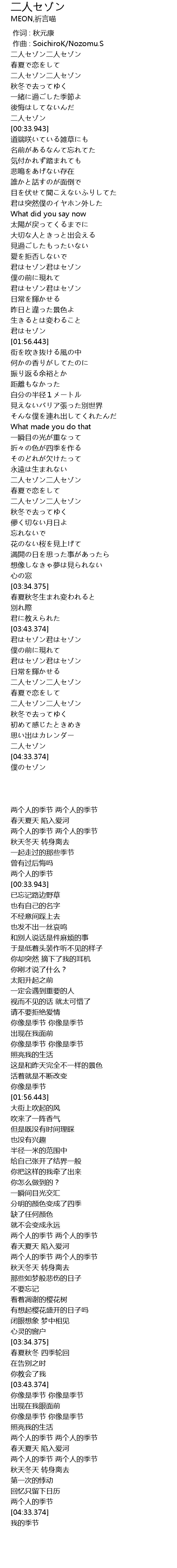 | [03:59.875] | 二人セゾン二人セゾン |