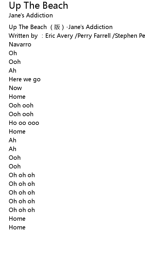 | [00:00.00] | Up The Beach bǎn Jane' s Addiction |