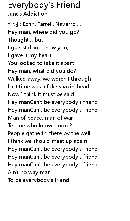 | Hey manCan' t be everybody' s friend | |