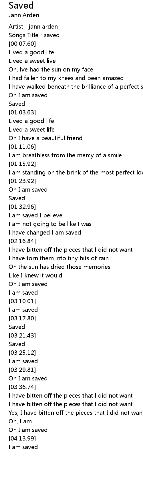 | [03:13.68] | I am saved |