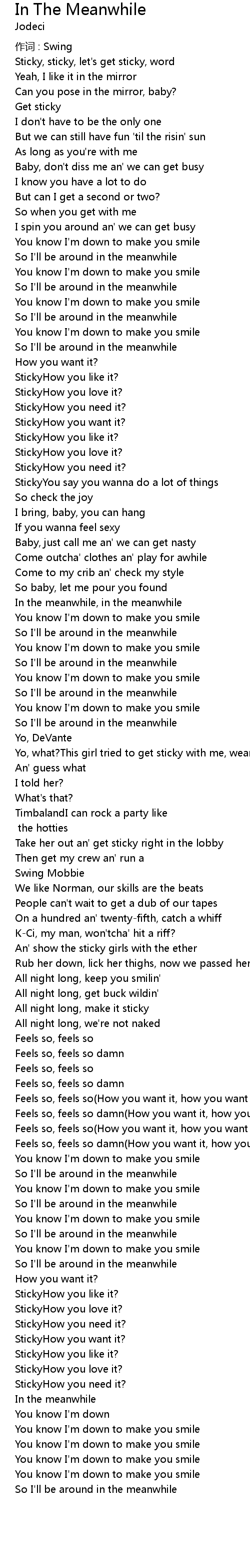 | Feels so, feels so damn How you want it, how you want it, sticky | |