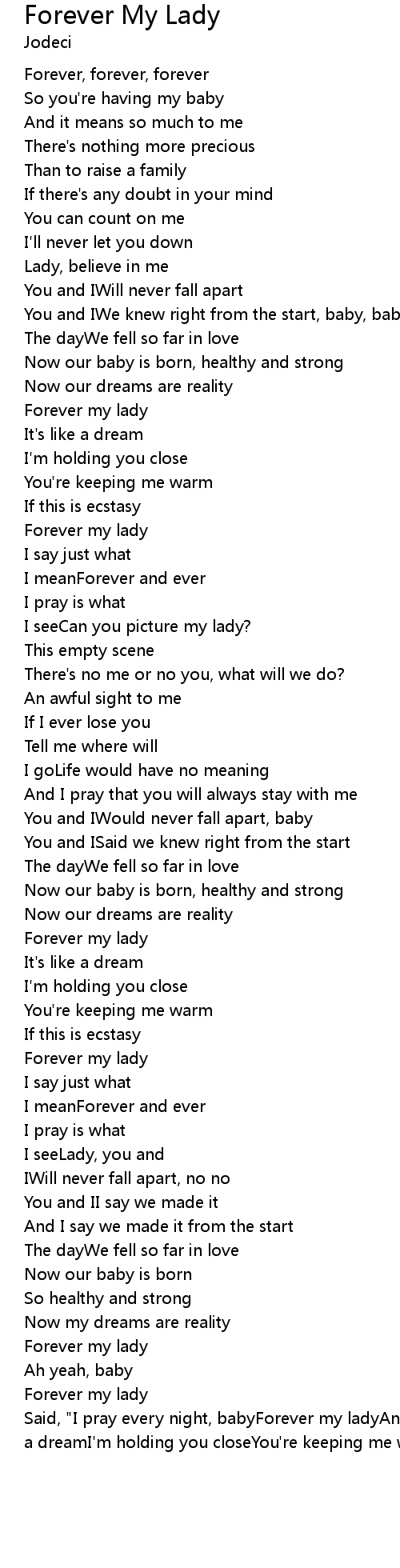 Said, "I pray every night, babyForever my ladyAnd every day of the weekIt's like a dreamI'm holding you closeYou're keeping me warmIf this is ecstasy" |