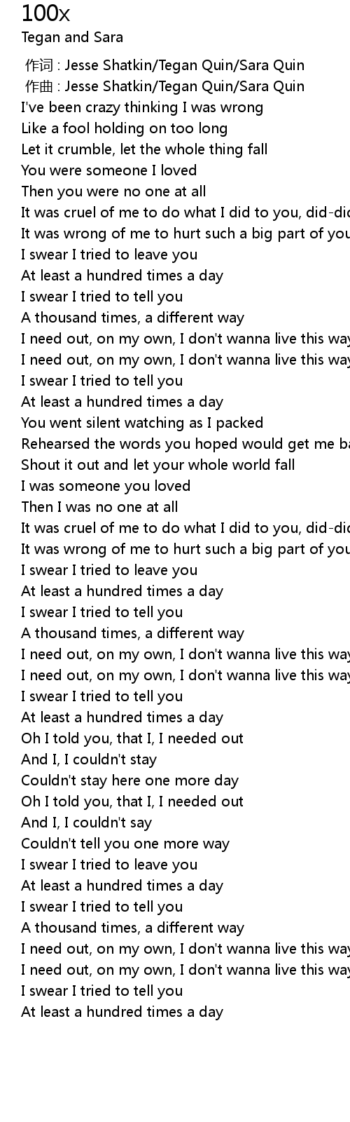 | [00:01.000] | zuo qu : Jesse Shatkin Tegan Quin Sara Quin |
